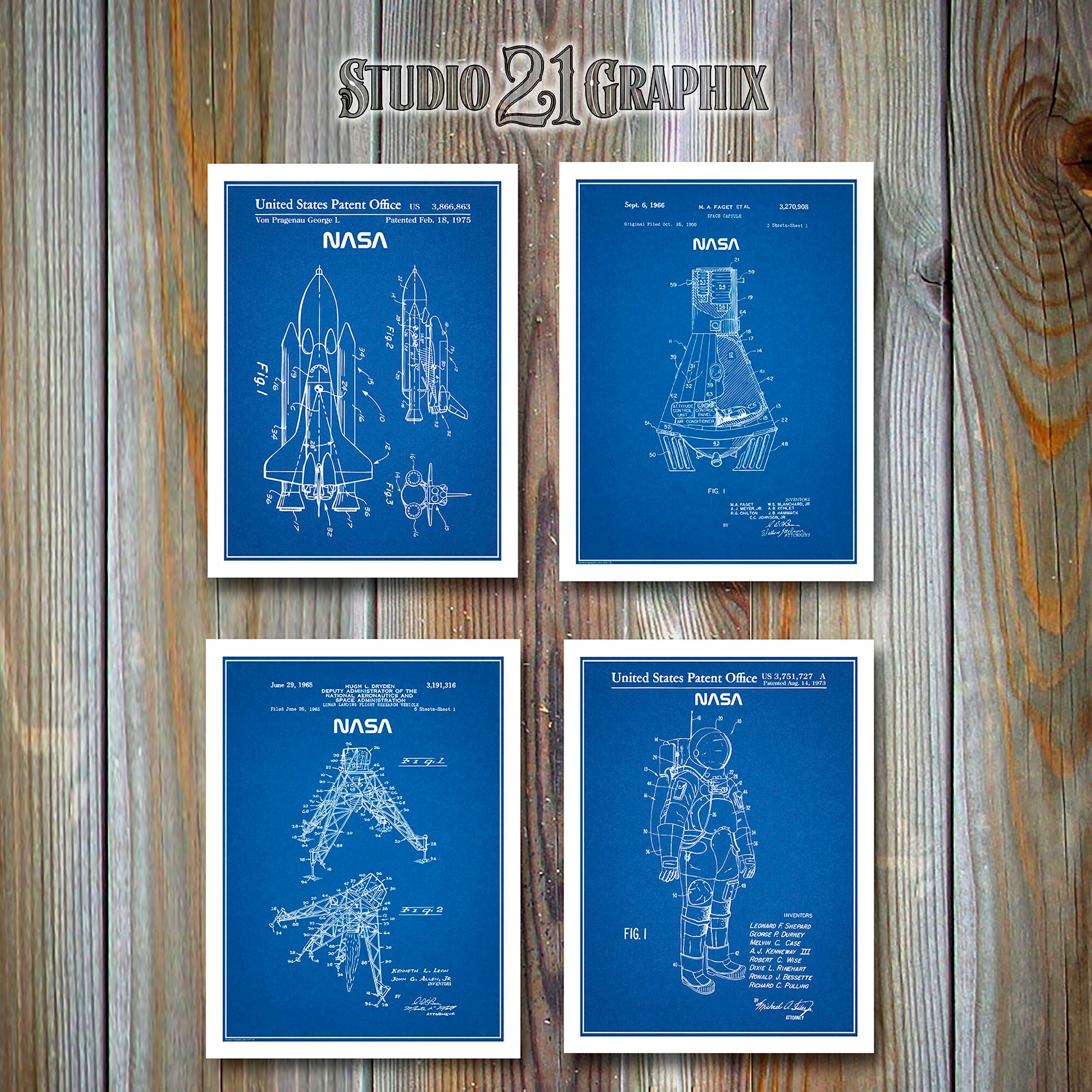 Nasa Set Of 4 Patent Prints Space Shuttle Astronaut Art Etsy