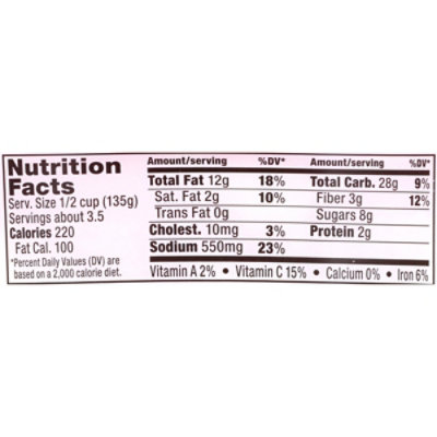 KEY FACTS learn. 117 Amount Per Serving Daily Value Total Fat. Loaded with hearty bacon and real cheddar cheese.